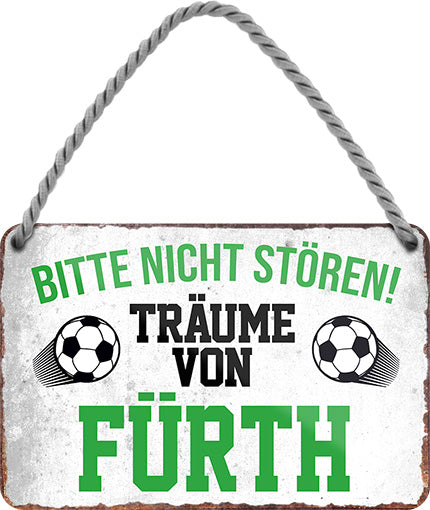 Das Blechschild ''Träume von Fürth'' ist aus einem qualitativ hochwertigen Blech mit abgerundeten und umgeschlagenen Kanten. Ideal für Liebhaber und Fans von "Fußball und Vereinen" und definitiv ein Hingucker für jedermanns Auge.