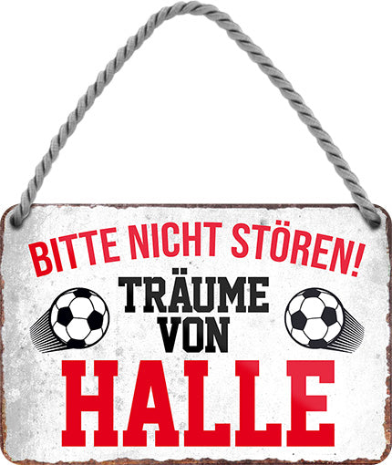 Das Blechschild ''Träume von Halle'' ist aus einem qualitativ hochwertigen Blech mit abgerundeten und umgeschlagenen Kanten. Ideal für Liebhaber und Fans von "Fußball und Vereinen" und definitiv ein Hingucker für jedermanns Auge.