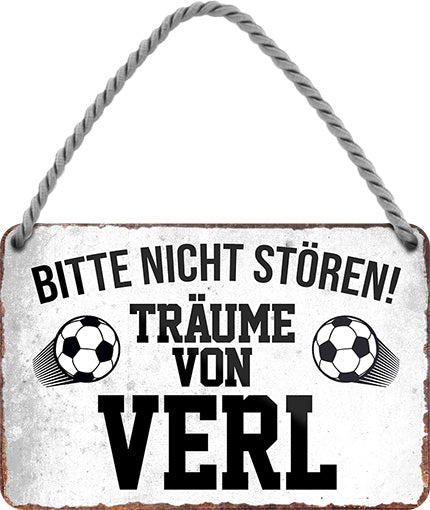 Das Blechschild ''Träume von Verl'' ist aus einem qualitativ hochwertigen Blech mit abgerundeten und umgeschlagenen Kanten. Ideal für Liebhaber und Fans von "Fußball und Vereinen" und definitiv ein Hingucker für jedermanns Auge.