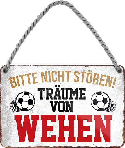 Das Blechschild ''Träume von Wehen'' ist aus einem qualitativ hochwertigen Blech mit abgerundeten und umgeschlagenen Kanten. Ideal für Liebhaber und Fans von "Fußball und Vereinen" und definitiv ein Hingucker für jedermanns Auge.