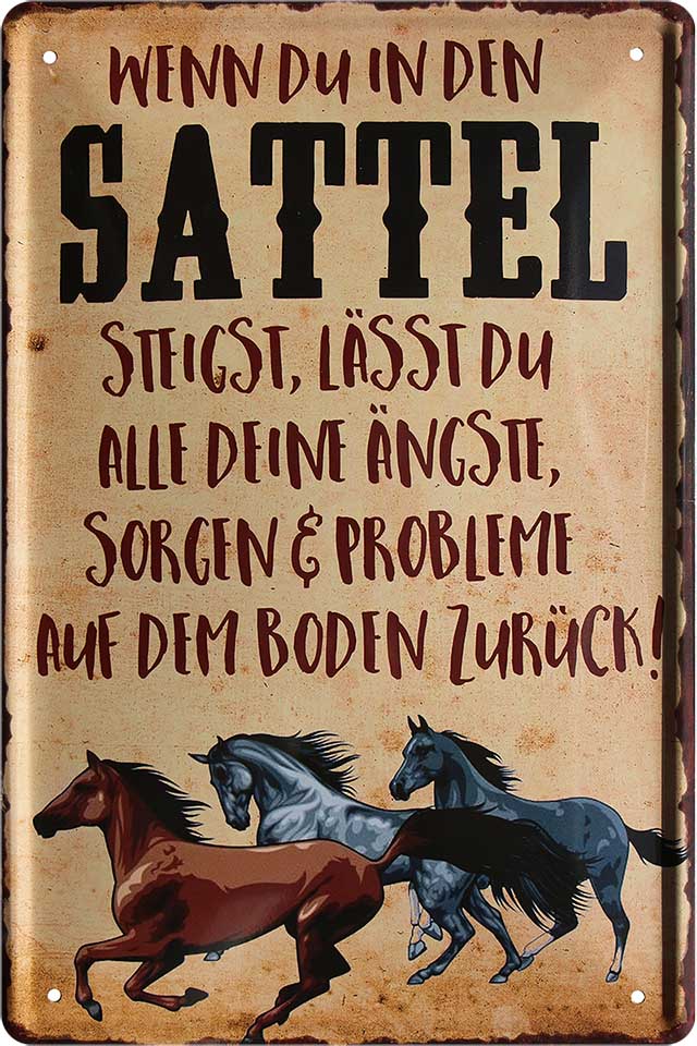 Blechschild ''Wenn du in den Sattel steigst, lässt du Ängste zurück'' 20x30cm