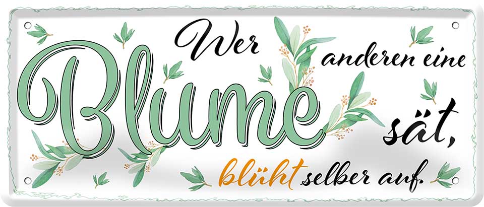 Blechschild ''Wer anderen eine Blume sät, blüht selbst auf'' 28x12cm