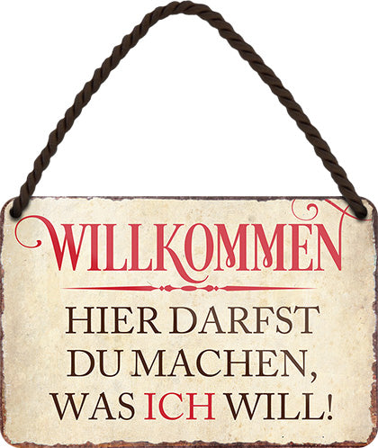 Blechschild ''Willkommen. Hier darfst du machen was ich will'' 18x12cm