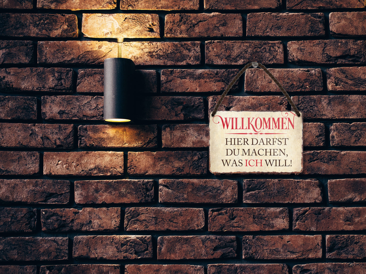 Das Blechschild ''Willkommen. Hier darfst du machen was ich will'' ist aus einem qualitativ hochwertigen Blech mit abgerundeten und umgeschlagenen Kanten. Ideal für Liebhaber und Fans von ''einem vertrautem Heim'' und definitiv ein Hingucker für jedermanns Auge.