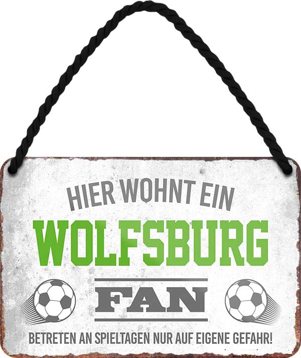 Das Blechschild ''Wolfsburg Fan'' ist aus einem qualitativ hochwertigen Blech mit abgerundeten und umgeschlagenen Kanten. Ideal für Liebhaber und Fans von "Fußball und Vereinen" und definitiv ein Hingucker für jedermanns Auge.