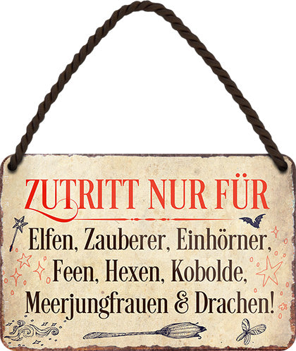 Blechschild ''Zutritt nur für Elfen, Zauberer, Einhörner'' 18x12cm