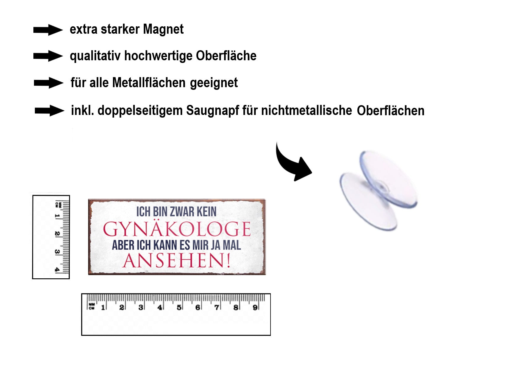 Der Super-Magnet ''Ich bin kein Gynäkologe, aber kann es mir ansehen'' ist aus einem langlebigen Metall mit qualitativ hochwertiger Oberfläche. Ideal für Liebhaber und Fans von ''anzüglichem Humor und sexy Pinups" und definitiv ein Hingucker für jedermanns Auge.