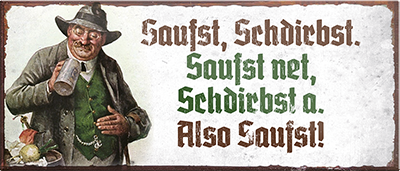 Der Super-Magnet ''Saufst schdirbst, saufst net, stirbst a'' ist aus einem langlebigen Metall mit qualitativ hochwertiger Oberfläche. Ideal für Liebhaber und Fans von "alkoholischen Getränken" und definitiv ein Hingucker für jedermanns Auge.