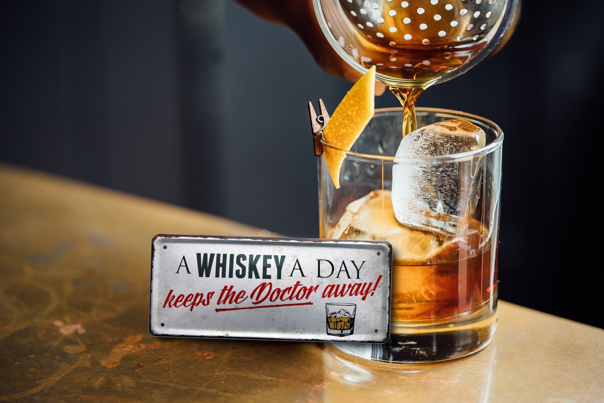 Tin sign ''A whiskey a day keeps the doctor away'' 28x12cm