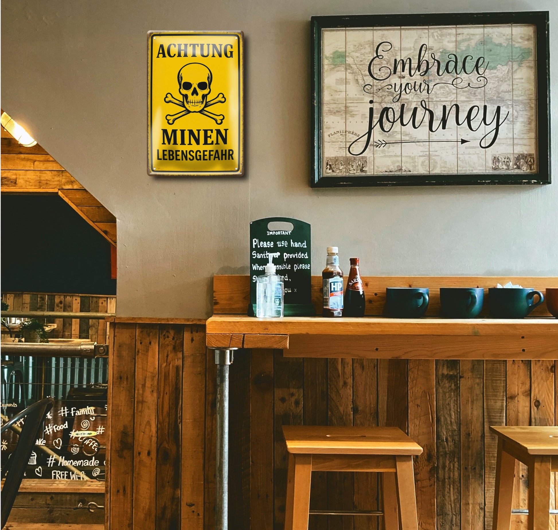 Blechschilder: Für den Innenbereich. Vermeiden Sie Feuchtigkeit und starke Sonneneinstrahlung.