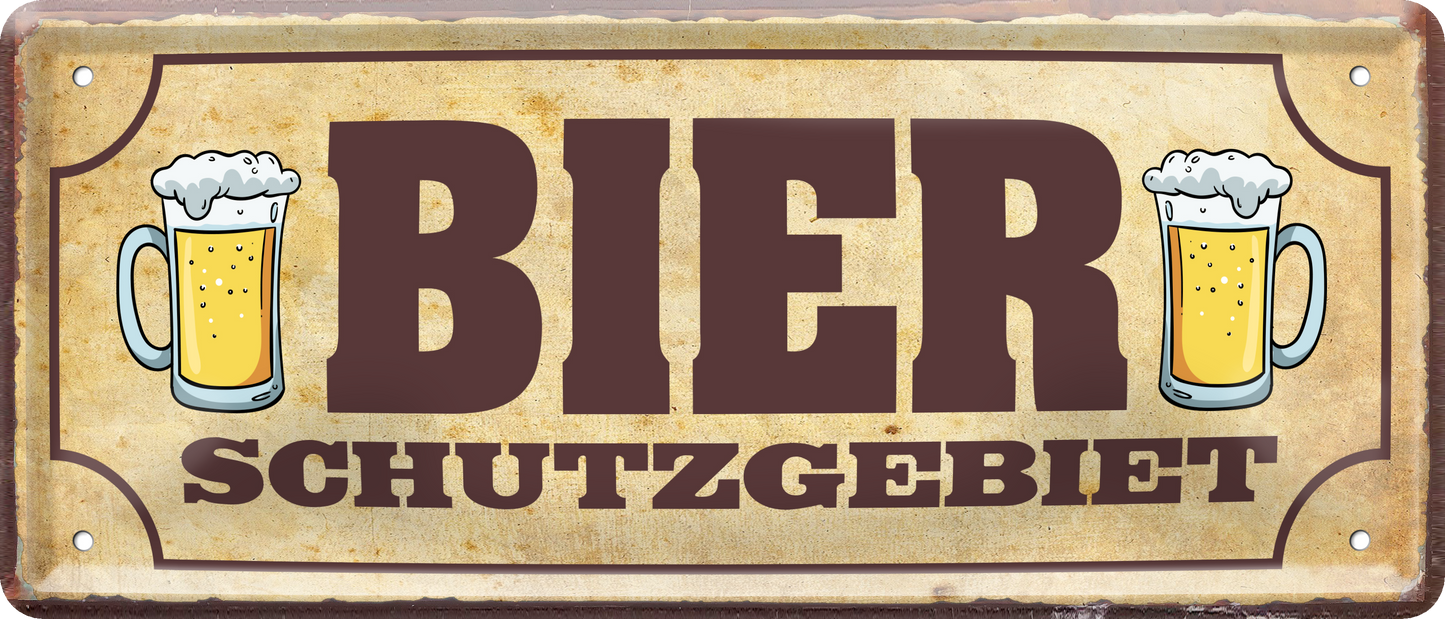 Das Blechschild ''Bier Schutzgebiet'' ist aus einem qualitativ hochwertigen Blech mit abgerundeten und umgeschlagenen Kanten. Ideal für Liebhaber und Fans von "alkoholischen Getränken" und definitiv ein Hingucker für jedermanns Auge.