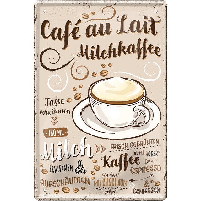 Tin sign "Cafe au Lait milk coffee" 20x30cm