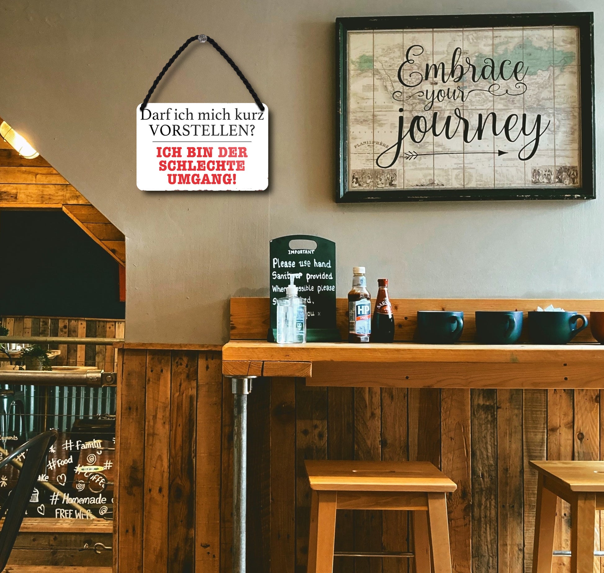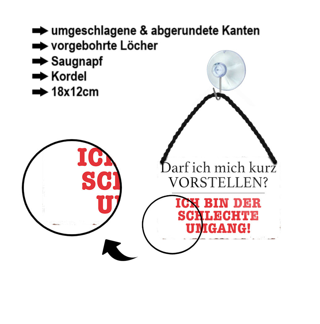 Blechschild ''Darf ich mich kurz Vorstellen. Schlechte Umgang'' 18x12cm