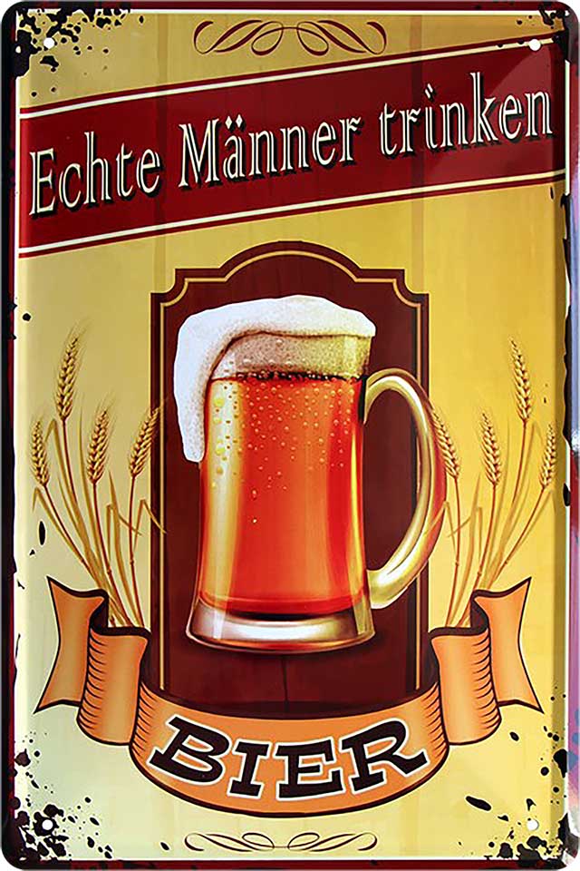 The tin sign "Real men drink beer" is made of high-quality tin with rounded and folded edges. Ideal for lovers and fans of "alcoholic beverages" and definitely an eye catcher for everyone.