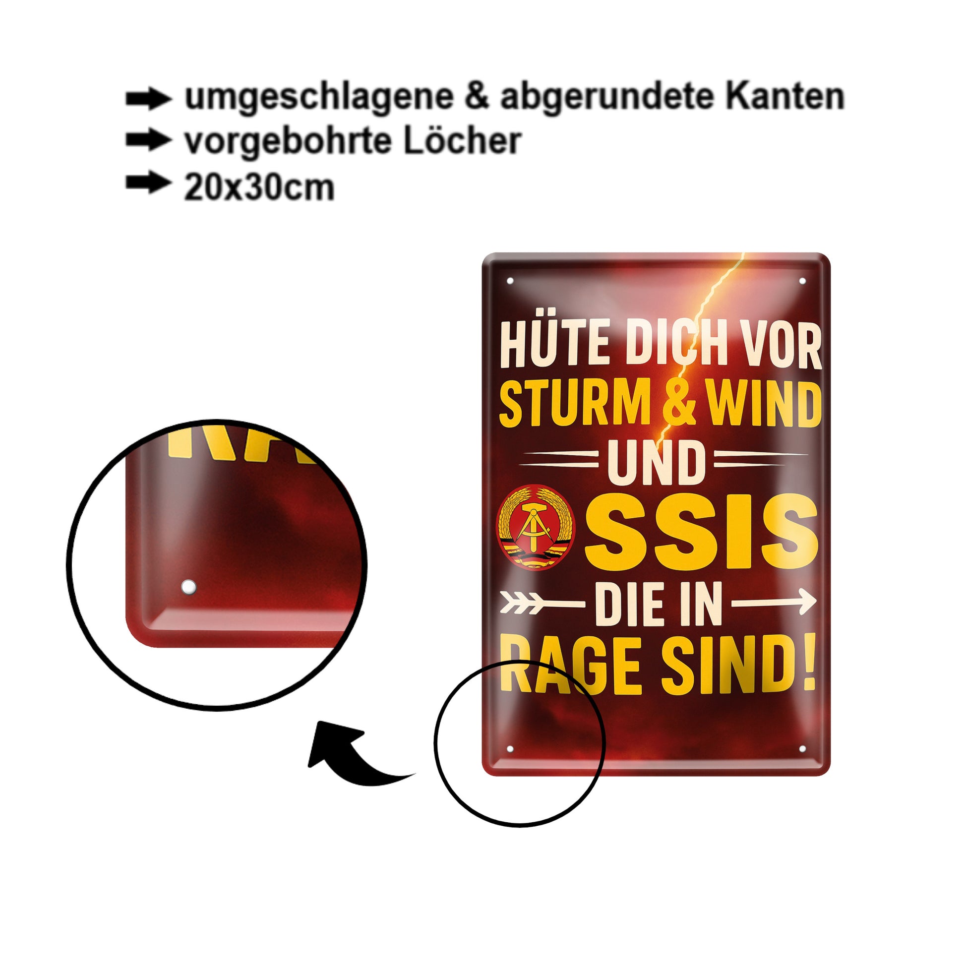 Blechschild ''Hüte dich vor Sturm, Wind & Ossis (braun)''20x30cm