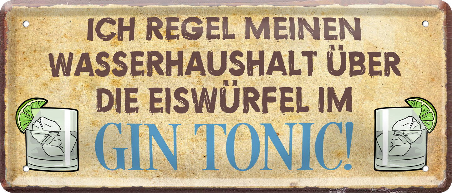 Blechschild ''Ich regel meinen Wasserhaushalt Gin Tonic'' 28x12cm