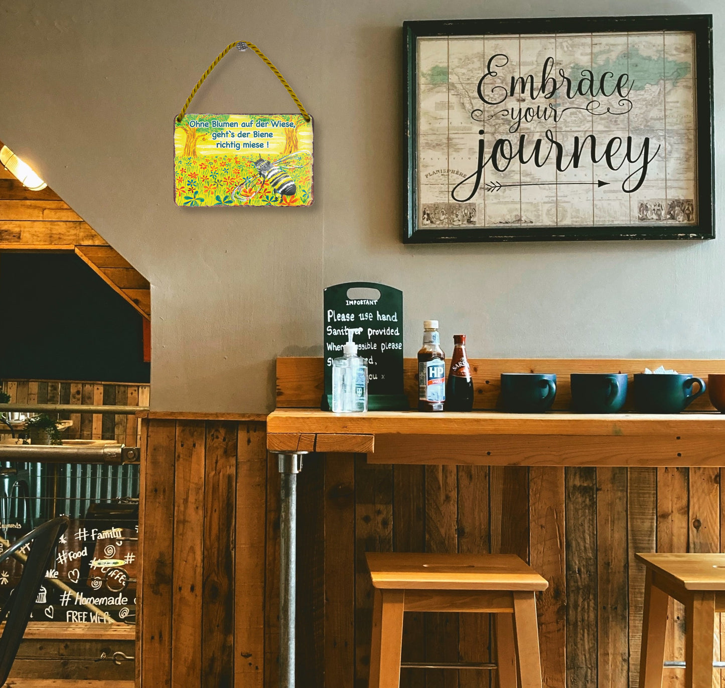 Blechschilder: Für den Innenbereich. Vermeiden Sie Feuchtigkeit und starke Sonneneinstrahlung.