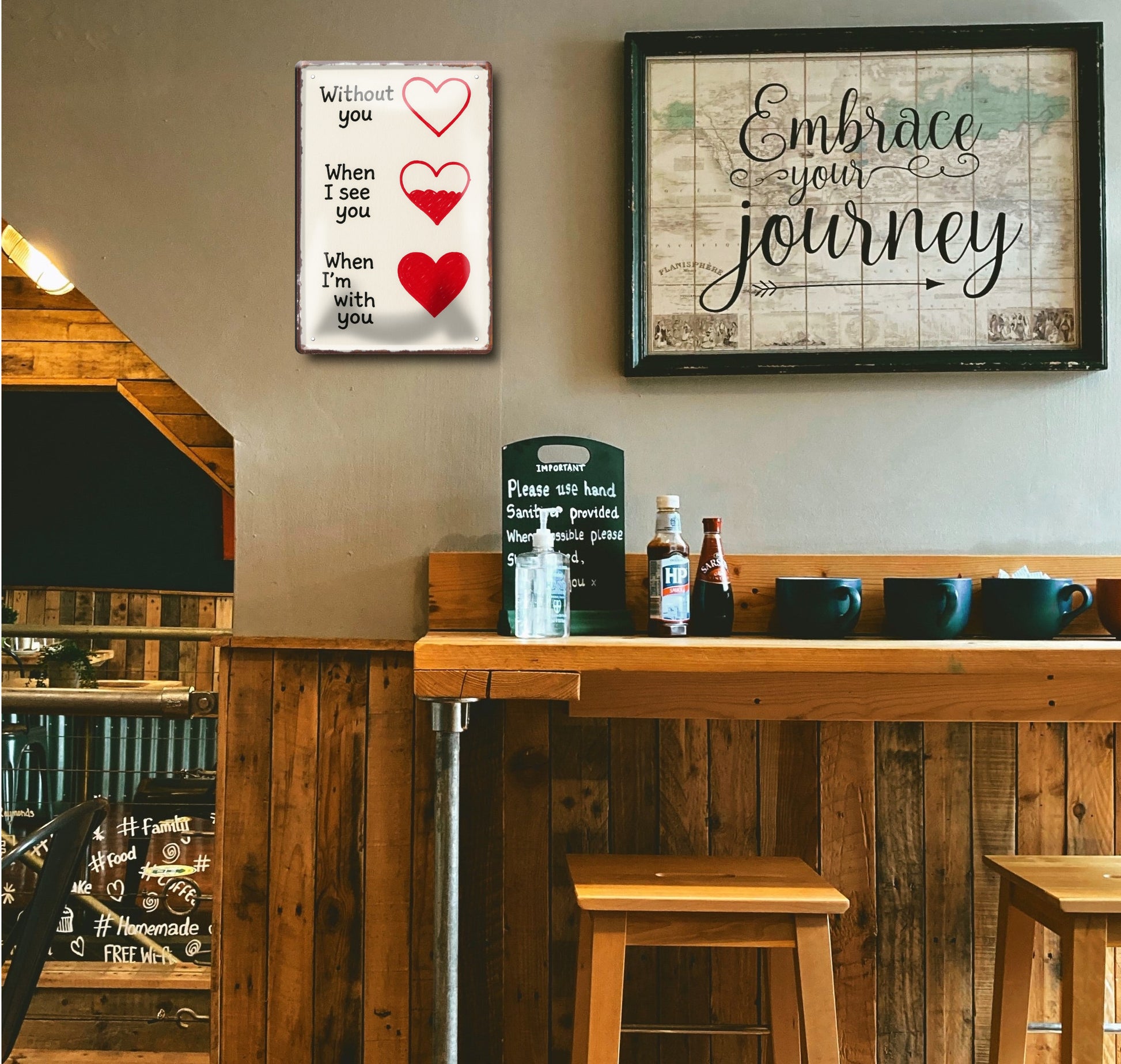 Das Blechschild ''Without you, when i see you, when i'm with you'' ist aus einem qualitativ hochwertigen Blech mit abgerundeten und umgeschlagenen Kanten. Ideal für Liebhaber und Fans von ''Romantik und Liebe'' und definitiv ein Hingucker für jedermanns Auge.