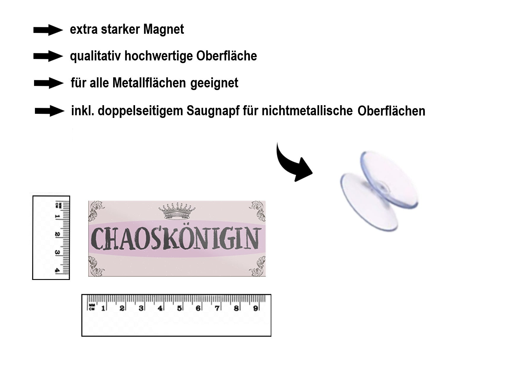 · Kühlschrankmagnete mit Saugnapf in den Größen 9x6 cm, 9,3x4 cm, 8x8 cm (rund)