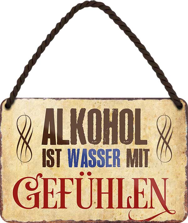 Blechschild ''Alkohol ist Wasser mit Gefühlen'' 18x12cm