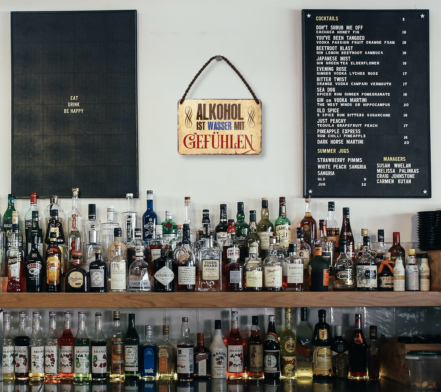 Das Blechschild ''Alkohol ist Wasser mit Gefühlen'' ist aus einem qualitativ hochwertigen Blech mit abgerundeten und umgeschlagenen Kanten. Ideal für Liebhaber und Fans von „alkoholischen Getränken“ und definitiv ein Hingucker für jedermanns Auge.