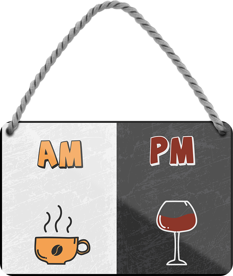 Blechschild ''AM PM Kaffee und Wein'' 18x12cm