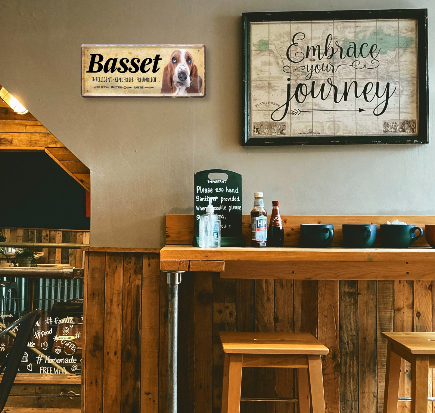 Das Blechschild ''Basset'' ist aus einem qualitativ hochwertigen Blech mit abgerundeten und umgeschlagenen Kanten. Ideal für Liebhaber und Fans von ''süßen Haustieren'' und definitiv ein Hingucker für jedermanns Auge.