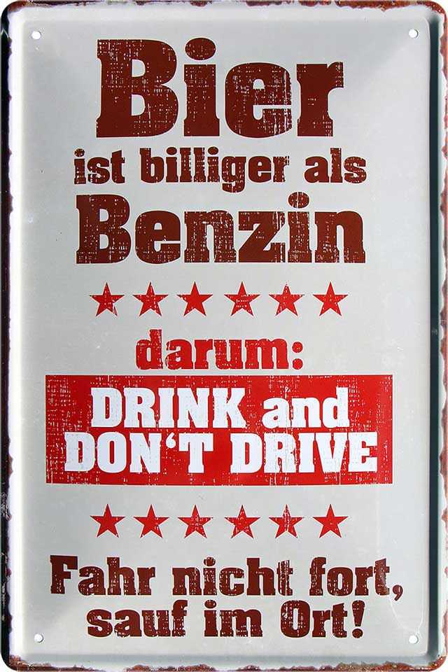 Blechschild ''Bier ist billiger als Benzin'' 20x30cm