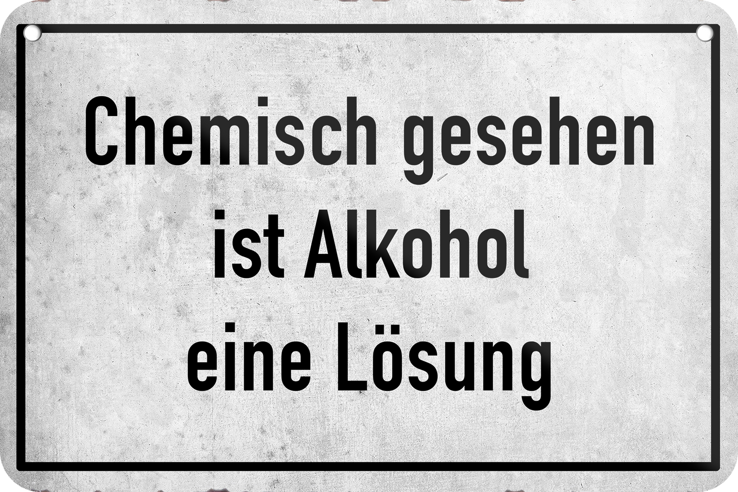Das Blechschild ''Chemisch gesehen ist Alkohol eine Lösung'' ist aus einem qualitativ hochwertigen Blech mit abgerundeten und umgeschlagenen Kanten. Ideal für Liebhaber und Fans von ''alkoholischen Getränken'' und definitiv ein Hingucker für jedermanns Auge.