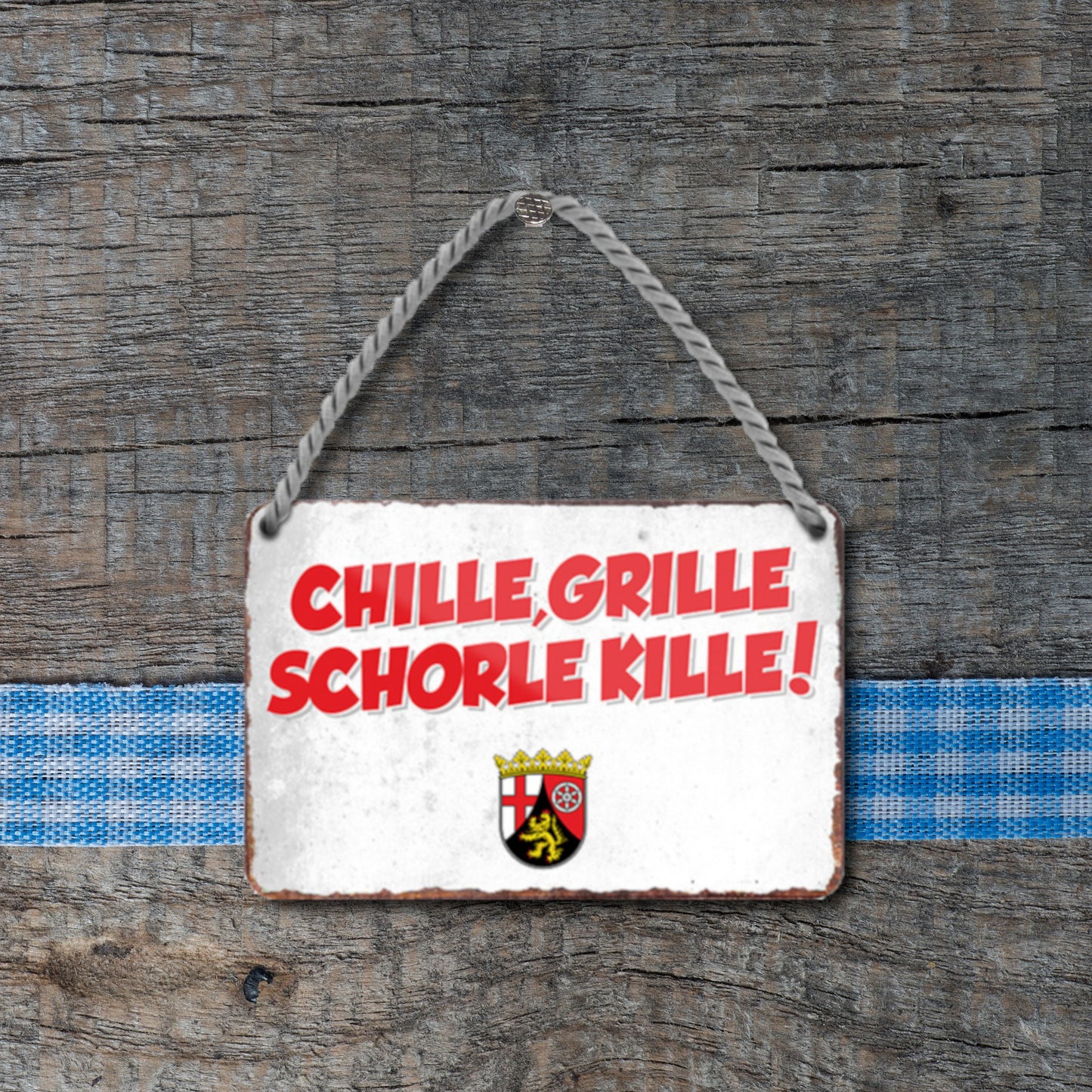 Blechschild ''CHILLE, GRILLE SCHORLE KILLE'' 18x12cm