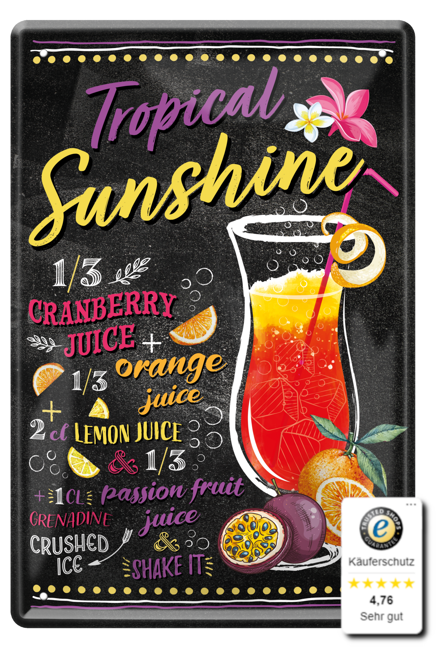 Blechschilder ''Cocktailrezepte 5 von 5'' Caipi 28, Cinderella, Pornstar, Tropical Sunshine uvm. 20x30cm