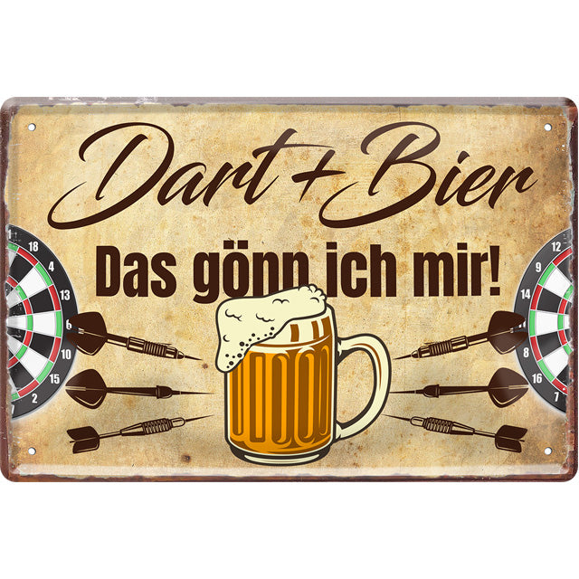 Blechschild ''Dart & Bier Das gönn ich mir (braun)'' 20x30cm