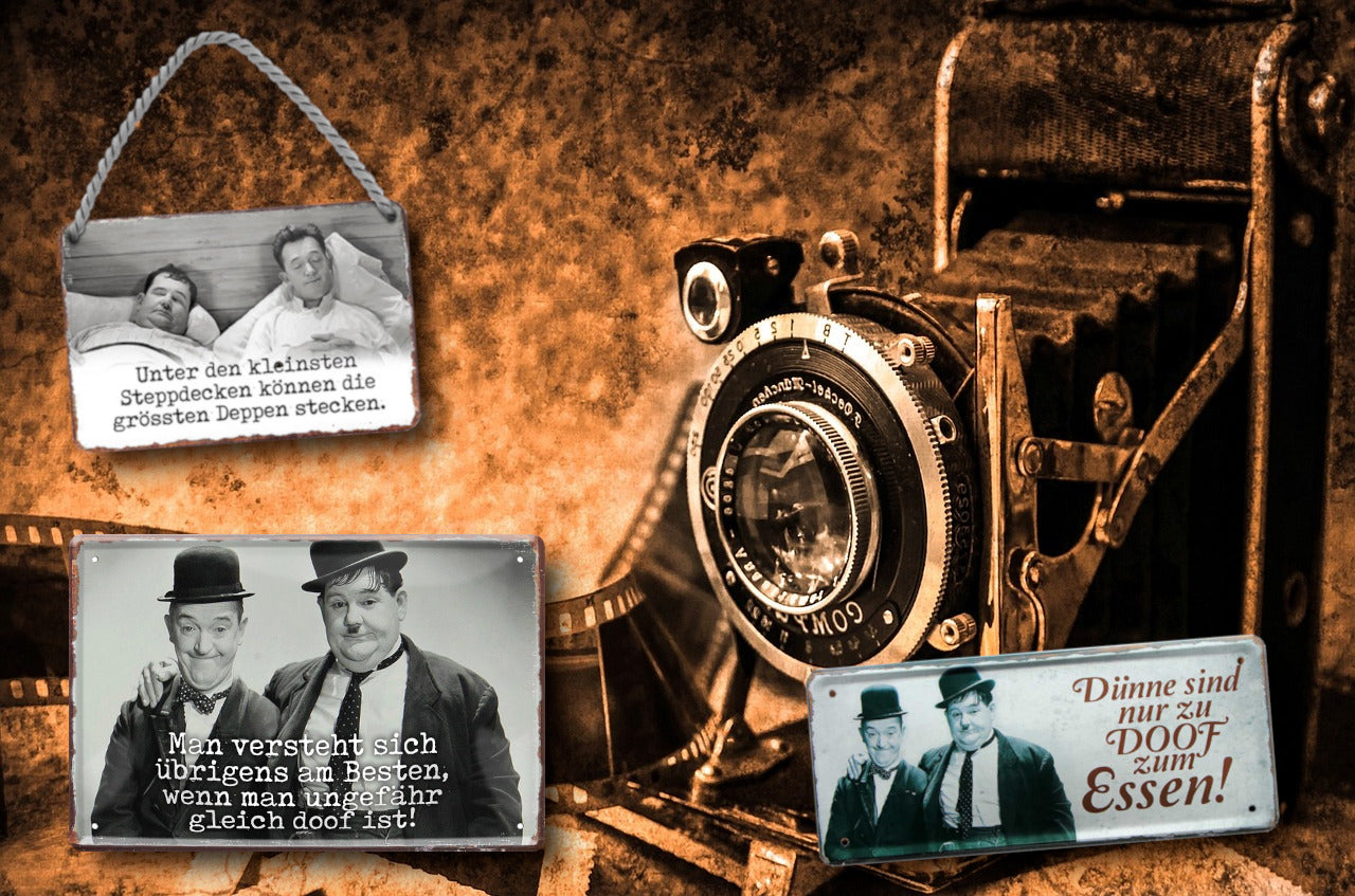 Das Blechschild ''Dick&Doof Dünne sind nur zu Doof zum essen'' ist aus einem qualitativ hochwertigen Blech mit abgerundeten und umgeschlagenen Kanten. Ideal für Liebhaber und Fans von ''Stars und Sternchen'' und definitiv ein Hingucker für jedermanns Auge.