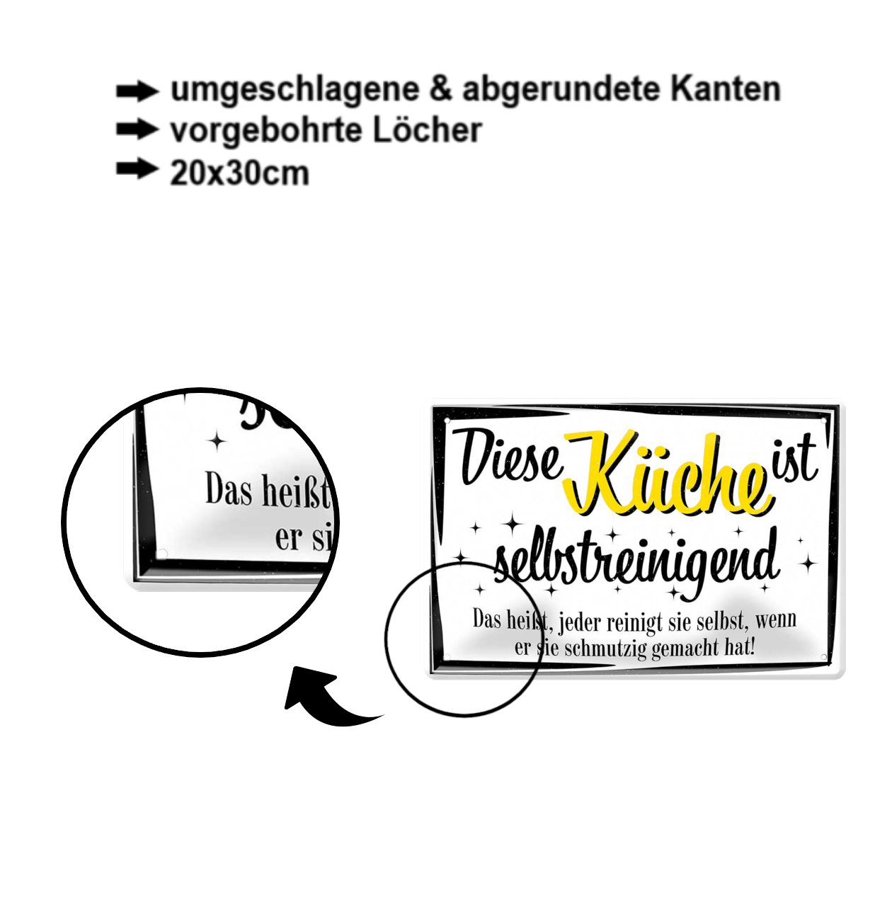 Blechschild ''Diese Küche ist selbstreinigend'' 20x30cm