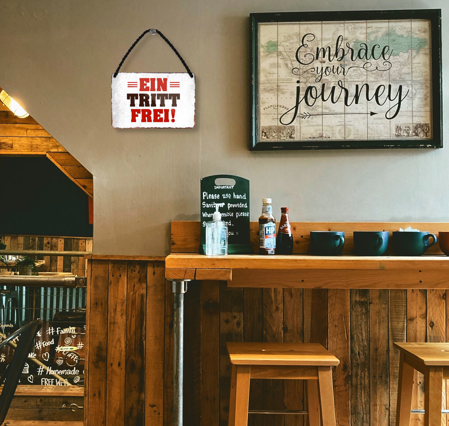 Das Blechschild ''Ein Tritt frei'' ist aus einem qualitativ hochwertigen Blech mit abgerundeten und umgeschlagenen Kanten. Ideal für Liebhaber und Fans von ''ironischem und sarkastischem Humor'' und definitiv ein Hingucker für jedermanns Auge.