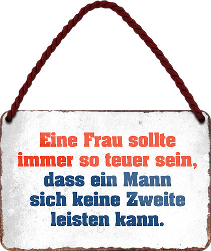 Blechschild ''Eine Frau sollte immer so teuer sein, dass Mann keine Zweite'' 18x12cm