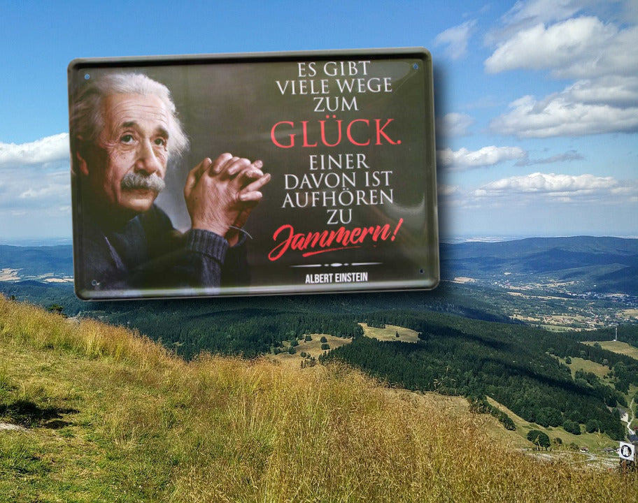 Blechschild ''Es gibt viel Wege zum Glück (Einstein)'' 20x30cm