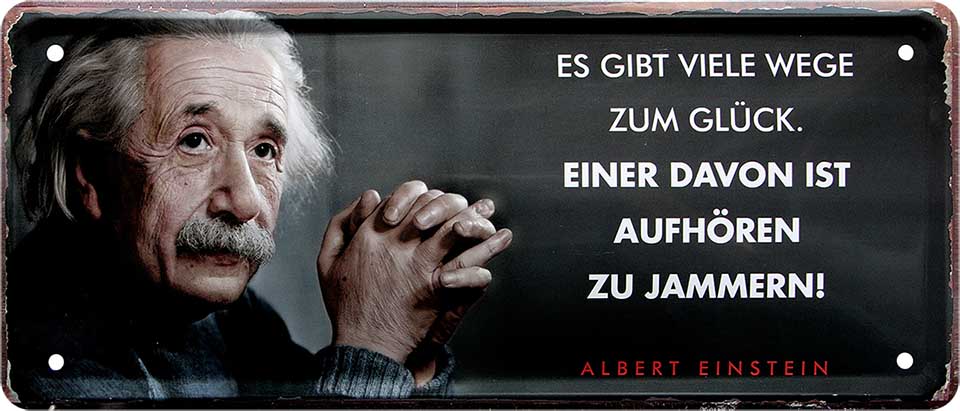 Blechschild ''Es gibt viele Wege zum Glück (Einstein)'' 28x12cm