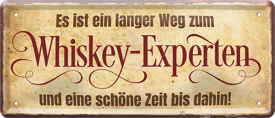 Blechschild ''Es ist ein langer Weg zum Whiskey-Experten'' 28x12cm