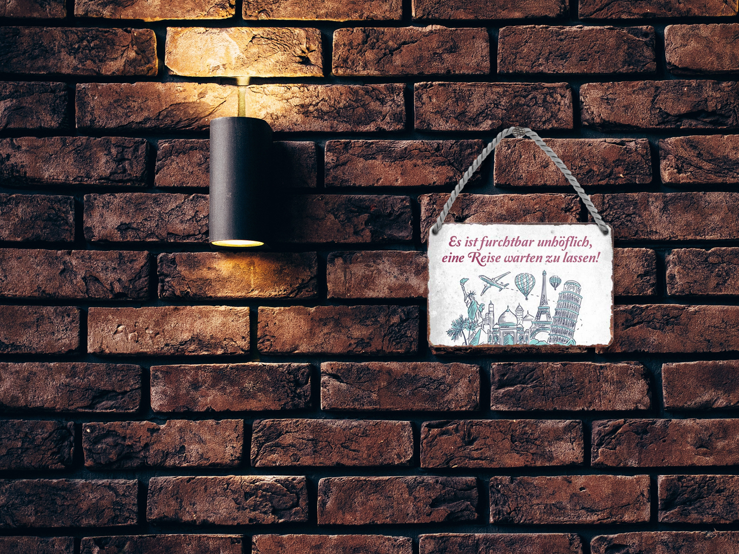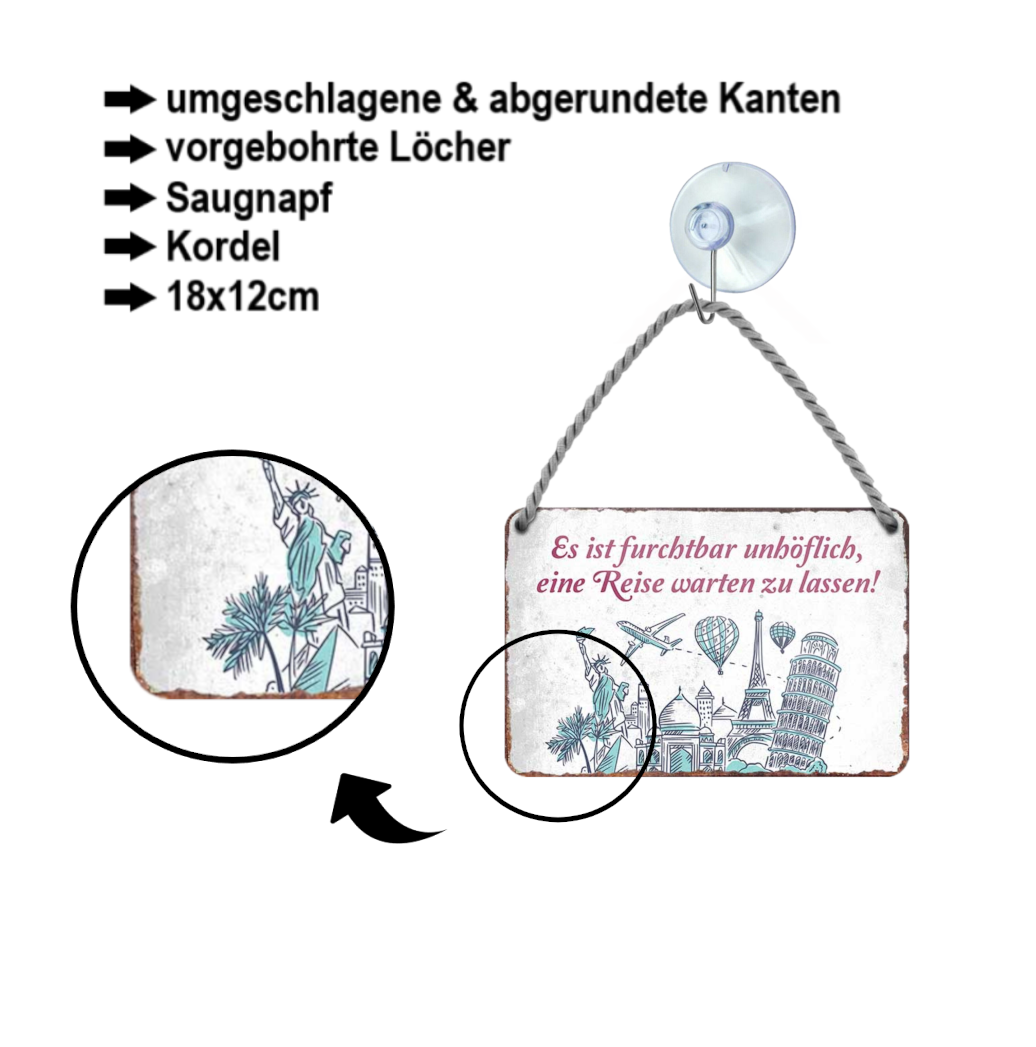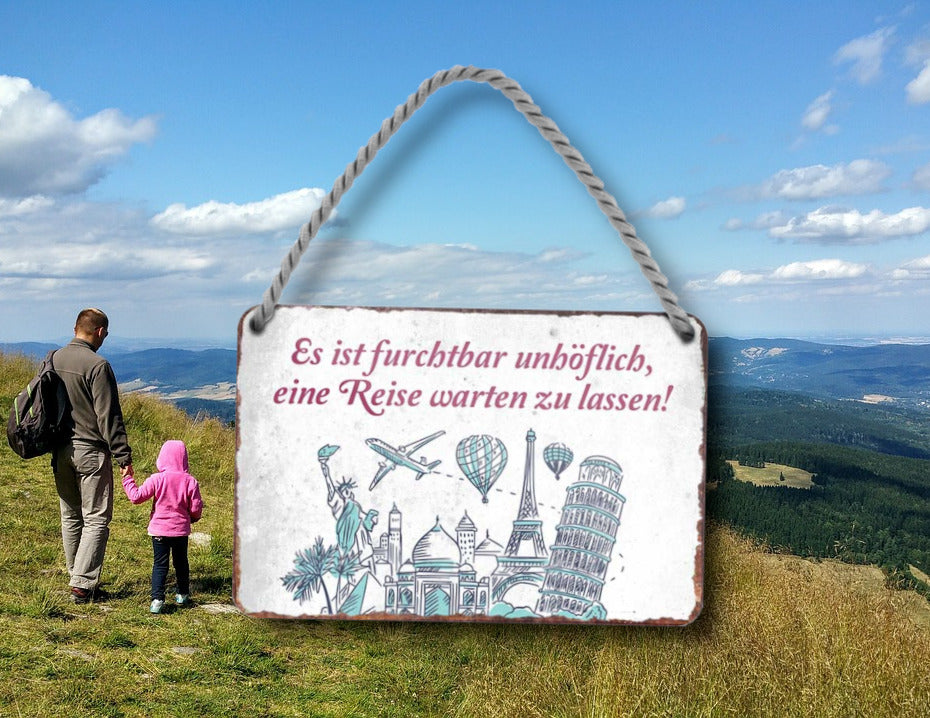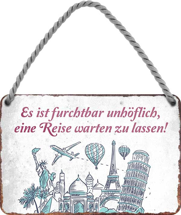 Blechschild ''Es ist furchtbar unhöflich, eine Reise warten zu lassen'' 18x12cm