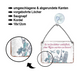 Bei den Formaten 18x12 cm und 18x14 cm wird ein Saugnapf sowie eine Kordel zur Aufhängung mitgeliefert. Diese können als Kleinteile gelten.