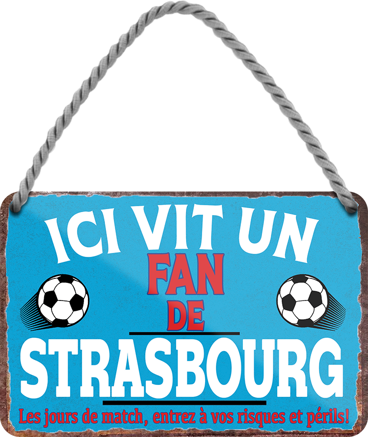 Das Blechschild ''Fan de Strasbourg'' ist aus einem qualitativ hochwertigen Blech mit abgerundeten und umgeschlagenen Kanten. Ideal für Liebhaber und Fans von "Fußball und Vereinen" und definitiv ein Hingucker für jedermanns Auge.