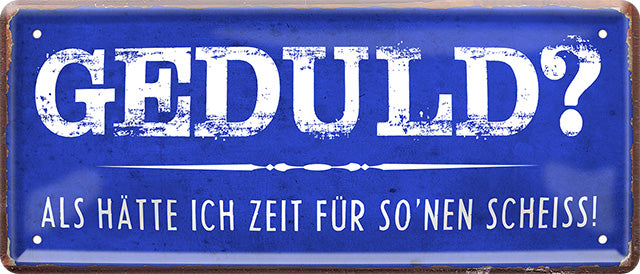 Blechschild ''Geduld. als hätte ich Zeit für so´nen scheiss'' 28x12cm