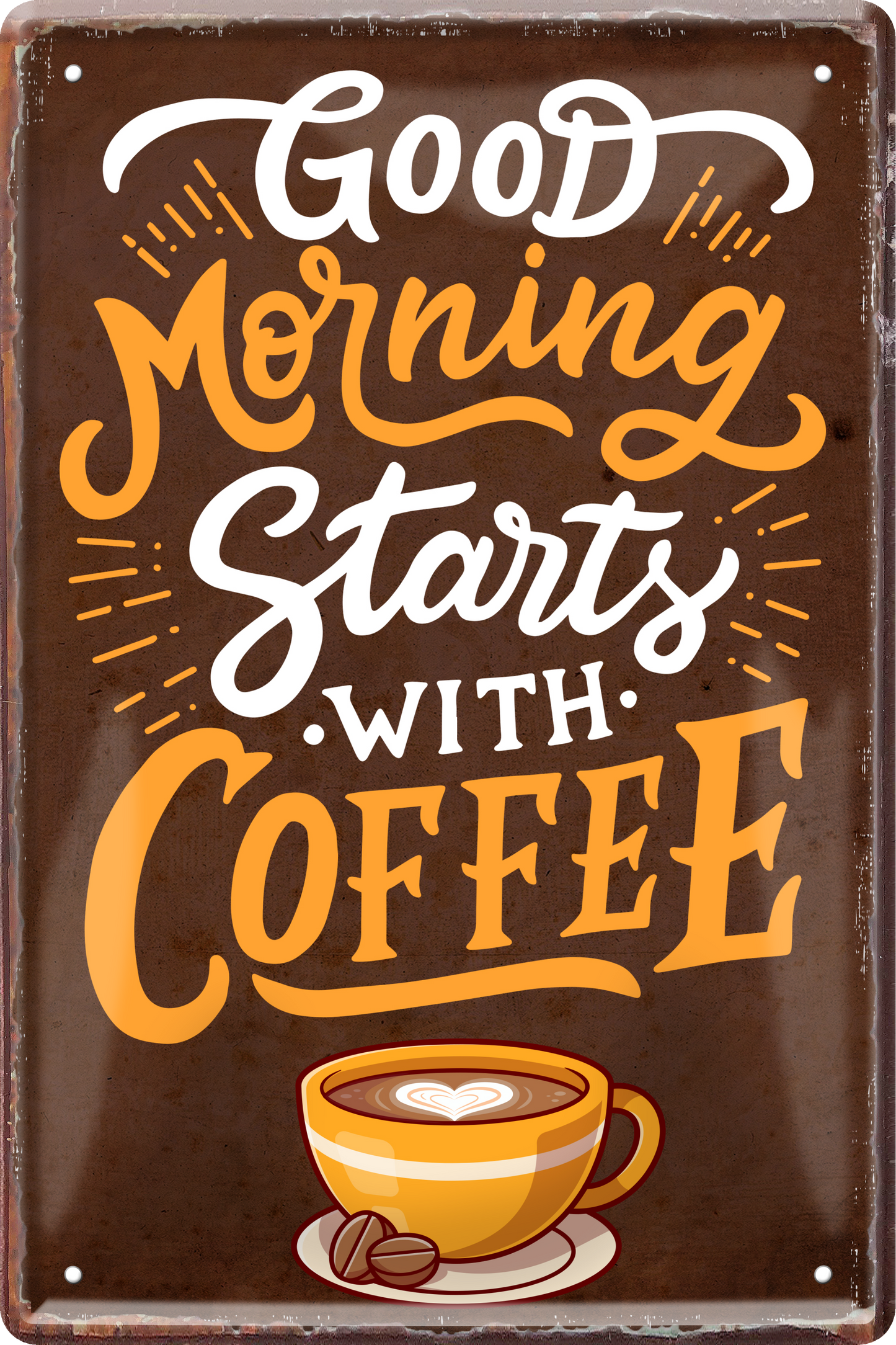 Blechschild ''Good morning starts with coffee'' 20x30cm