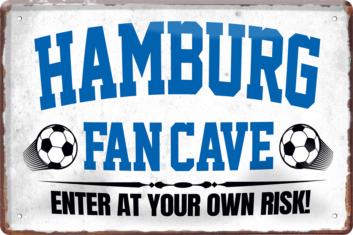 Das Blechschild ''Hamburg Fan Cave'' ist aus einem qualitativ hochwertigen Blech mit abgerundeten und umgeschlagenen Kanten. Ideal für Liebhaber und Fans von "Fußball und Vereinen" und definitiv ein Hingucker für jedermanns Auge.