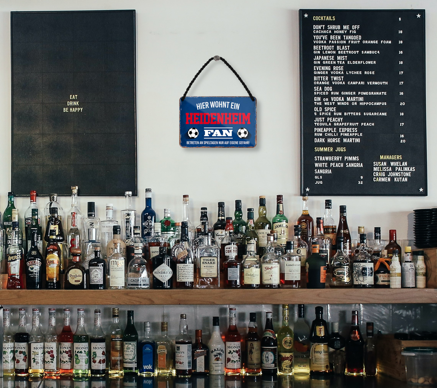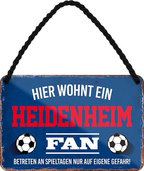 Das Blechschild ''Heidenheim Fan'' ist aus einem qualitativ hochwertigen Blech mit abgerundeten und umgeschlagenen Kanten. Ideal für Liebhaber und Fans von "Fußball und Vereinen" und definitiv ein Hingucker für jedermanns Auge.