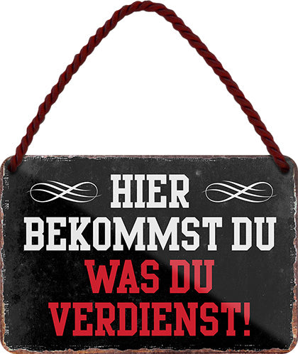 Blechschild ''Hier bekommst du was du verdienst'' 18x12cm
