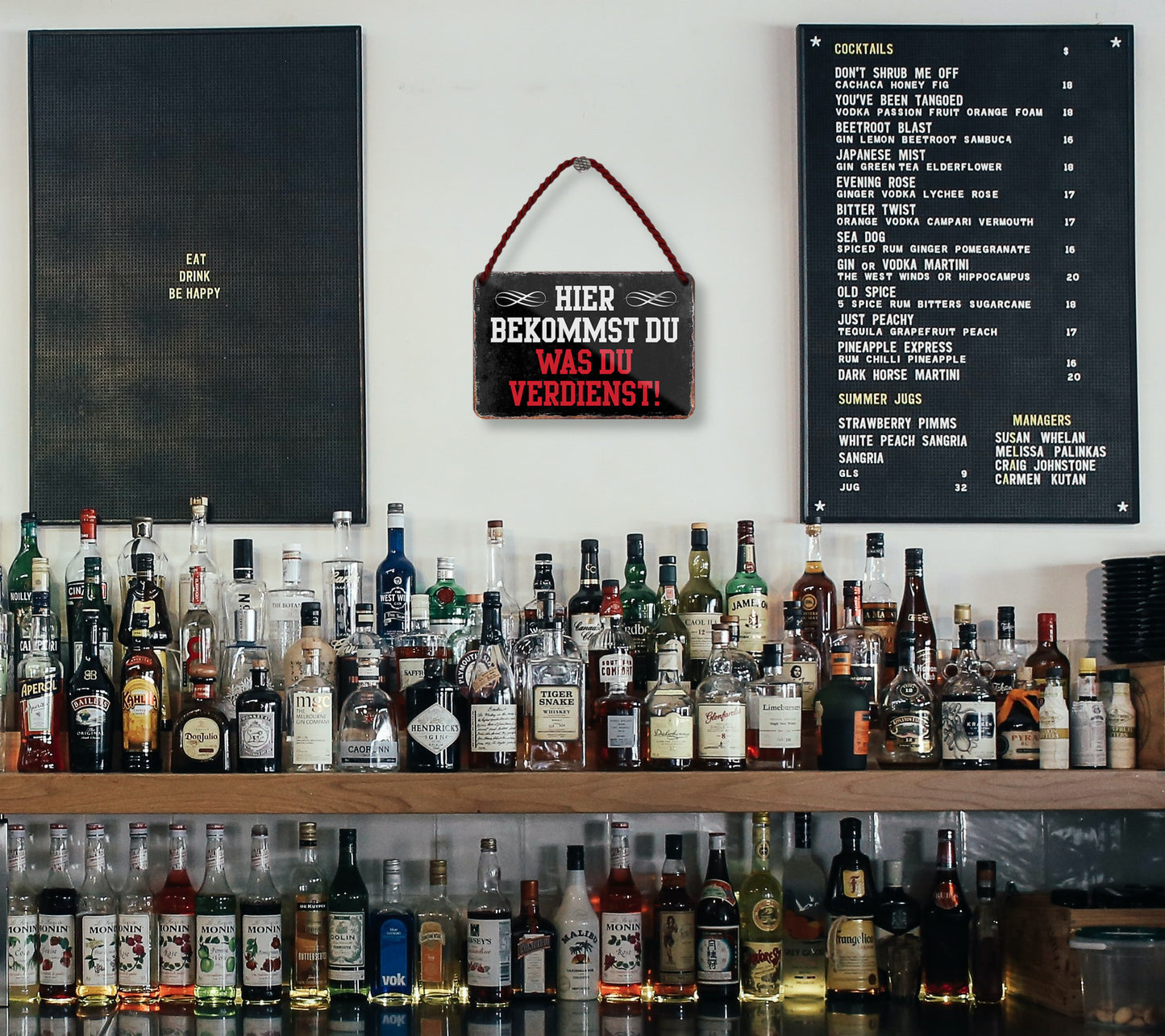 Das Blechschild ''Hier bekommst du was du verdienst'' ist aus einem qualitativ hochwertigen Blech mit abgerundeten und umgeschlagenen Kanten. Ideal für Liebhaber und Fans von ''ironischem und sarkastischem Humor'' und definitiv ein Hingucker für jedermanns Auge.