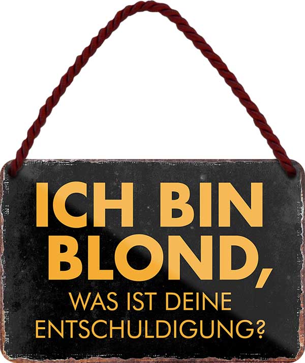 Blechschild ''Ich bin blond, was ist deine Entschuldigung'' 18x12cm