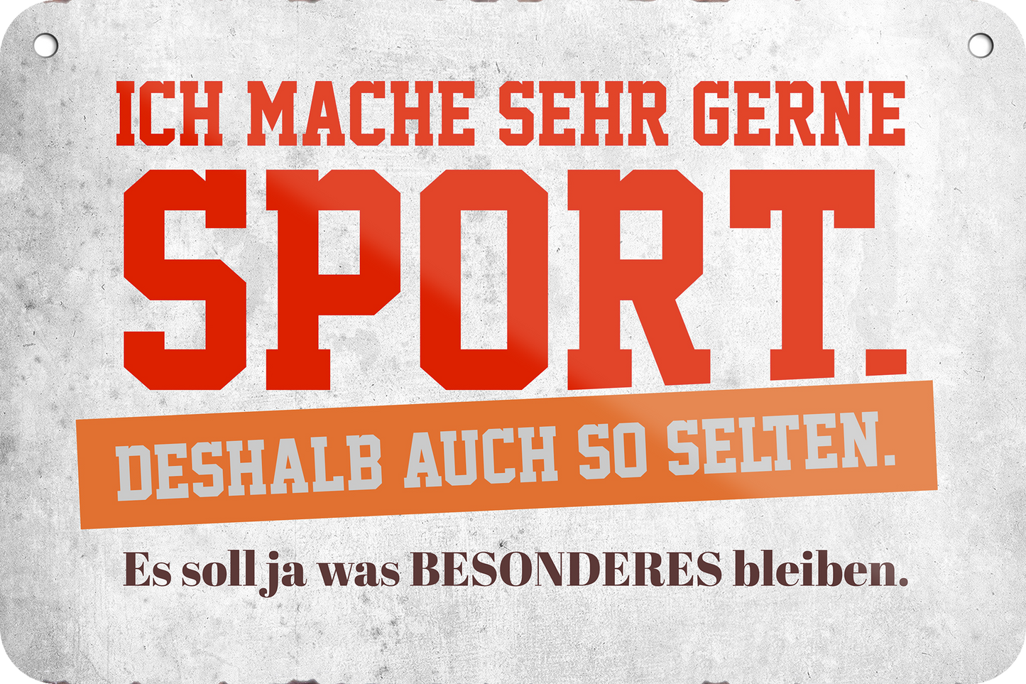 Das Blechschild ''Ich mache sehr gerne Sport'' ist aus einem qualitativ hochwertigen Blech mit abgerundeten und umgeschlagenen Kanten. Ideal für Liebhaber und Fans von "Freizeitsport" und definitiv ein Hingucker für jedermanns Auge.